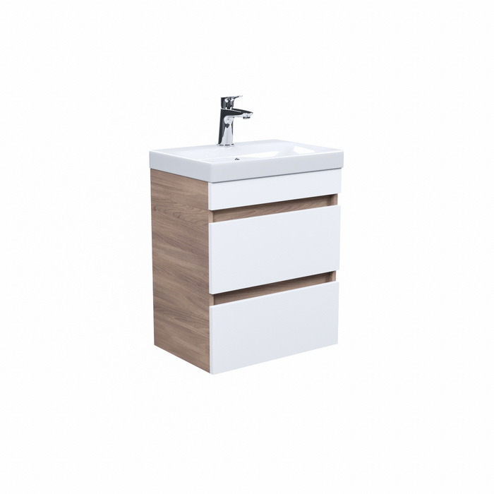 Тумба с умывальником IDDIS подвесная с ящиками 50 см белая/под дерево Zodiac (ZOD5AB0i95K)