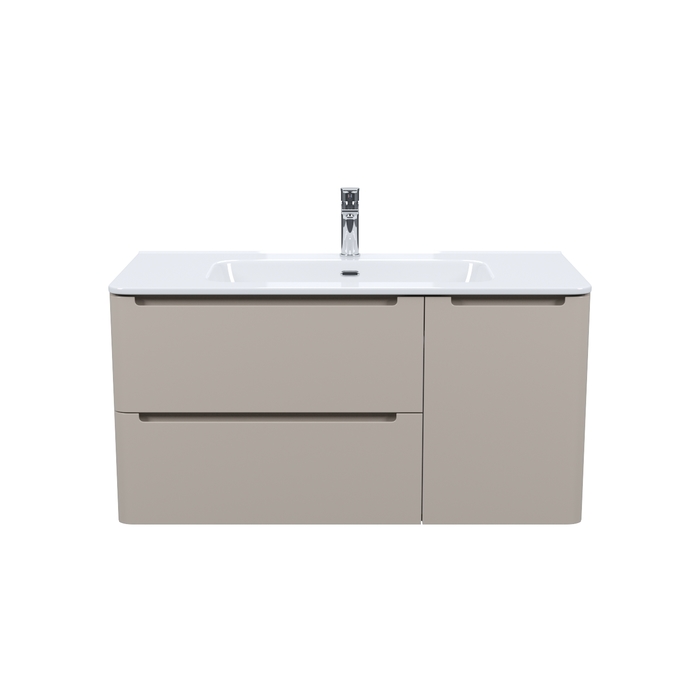 Вместительная подвесная тумба с плоским умывальником Edifice в теплом оттенке капучино – воплощение современного минимализма. Мягкие линии корпуса в сочетании с удобными интегрированными ручками выглядят свежо и актуально. Смотрится аккуратно, легко и не усложняет процесс уборки в ванной благодаря подвесной конструкции.