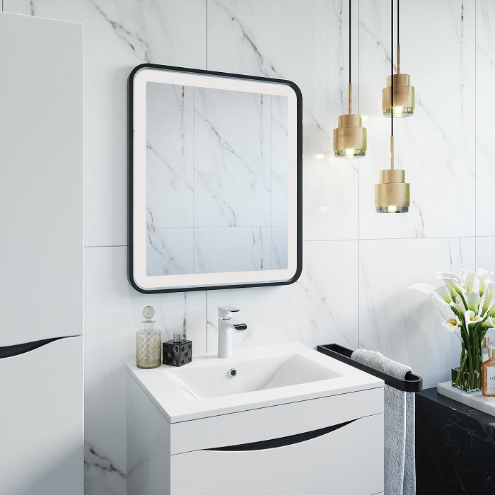 Зеркало для ванной с LED-подсветкой, 4мм. Размеры: 35х600х700 мм (ДхШхВ). Корпус сталь, цвет черный матовый.