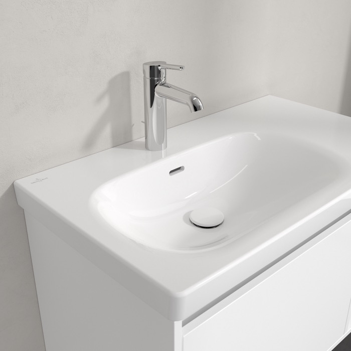 Раковина на тумбе создает дополнительное место для хранения в умывальной зоне. В сочетании с подходящей мебелью такая раковина придает ванной элегантный внешний вид. Модули тумбы и поверхности для хранения обеспечивают много места для ежедневно используемых принадлежностей.