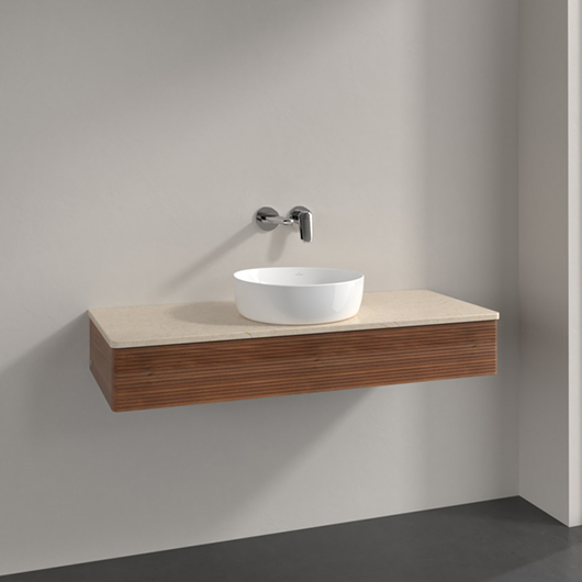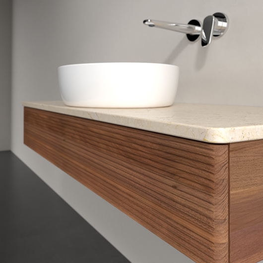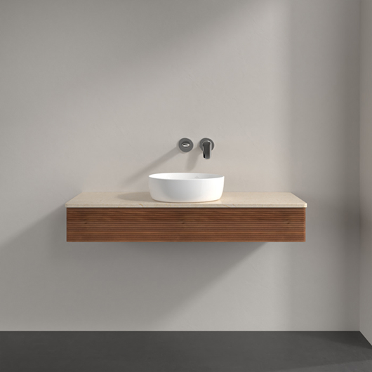 Тумба под раковину Villeroy & Boch Antao 1200х500 мм, Stone Grey Matt Lacquer (L10113HM) Основные характеристики:  •   Тумба под накладную раковину (подвесная модель) •   Выдвижной ящик с функцией SoftClosing и Push-to-open •   С внутренней подсветкой •   Размер 1200 x 190 x 500 мм •   Фронтальная поверхность со структурной обработкой •   Материал фасада: массив дерева •   Материал корпуса: ДСП •   Материал столешницы: мрамор, толщина 20 мм •   Цвет мебели/столешницы: Warm Walnut (Орех)/Botticino Техническая информация: •   Крепежный комплект входит в комплект поставки •   Лампа 1 x LED, IP 44, работает от сети •   Оснащение: 1 компактный сифон, 1 внутренняя подсветка выдвижных ящиков, 1 выдвижной ящик с антискользящим дном •   Для раковин 4A7240, 4A7351, 4A7465, 417943, 419861, 417841, 417258, 4A1840, 4A1956, 4A2138, 4A2056, 414361, 4A45 00/01, 4A46 00/01, 4A47 00/01, 4A48 00/01, 4A49 00/01, 4A50 00/01 •   Вес 58 кг Antao — In touch with nature. В гармонии с природой Целостная концепция дизайна коллекции Antao впечатляет своим органичным языком форм, вдохновленным природой. Плавные изгибы, натуральные материалы и гармоничные цвета создают атмосферу спокойствия и расслабленности. Мебель коллекции впечатляет большим количество мест для хранения, противоскользящими полками и функцией плавного закрывания. Она доступна в различных вариантах материалов и поверхностей, так что коллекцию можно подобрать по собственному вкусу. В качестве опции предлагаются фасады со структурированной поверхностью. В сочетании с функцией Push-Open каждое открывание и закрывание превращается в запоминающийся осязательный момент Тумбы под раковину: Оптимальное размещение принадлежностей Где разместить все те принадлежности, которыми каждый день пользуются в ванной? Тумбы под раковину Villeroy & Boch — это практичное и компактное решение: вы сами сможете навести порядок даже в самой маленькой ванной. Благодаря тумбе под раковину Villeroy & Boch все нужное будет у вас под рукой прямо под раковиной Двери и выдвижные ящики с функцией SoftClosing и автоматическим возвратом Благодаря современной технологии SoftClosing даже самое резкое закрывание выдвижных ящиков и дверей происходит бесшумно и плавно. Механизм SoftClosing тормозит выдвижной ящик и с помощью автоматического возврата медленно и бесшумно его задвигает — это щадит не только наш слух, но и саму мебель для ванной •   Амортизирующее и плавное закрывание дверей и выдвижных ящиков даже при резком захлопывании •   Больше комфорта и безопасности при ежедневном использовании •   Даже сильно нагруженные выдвижные ящики задвигаются с легкостью Механизм Push-to-open — для максимального комфорта С помощью механизма Push-to-open мебели для ванной Villeroy & Boch вы сильно облегчите свою повседневную жизнь. Фасады без ручек создают чрезвычайно благородный облик и легко открываются и закрываются одним нажатием с помощью механизма Push-to-open. •   Насладитесь максимальным комфортом в ванной комнате •   Плавное открывание и закрывание выдвижных ящиков одним легким касанием любой точки на фасаде •   Современный внешний вид с четкими линиями благодаря исполнению фасадов без ручек Полное выдвижение Благодаря функции полного выдвижения выдвижные ящики можно полностью выдвигать. Все их содержимое хорошо видно и его удобно доставать. Больше не нужно копаться в дальних отсеках выдвижного ящика — благодаря мебели для ванной с полным выдвижением вы получаете полный обзор •   Выдвижные