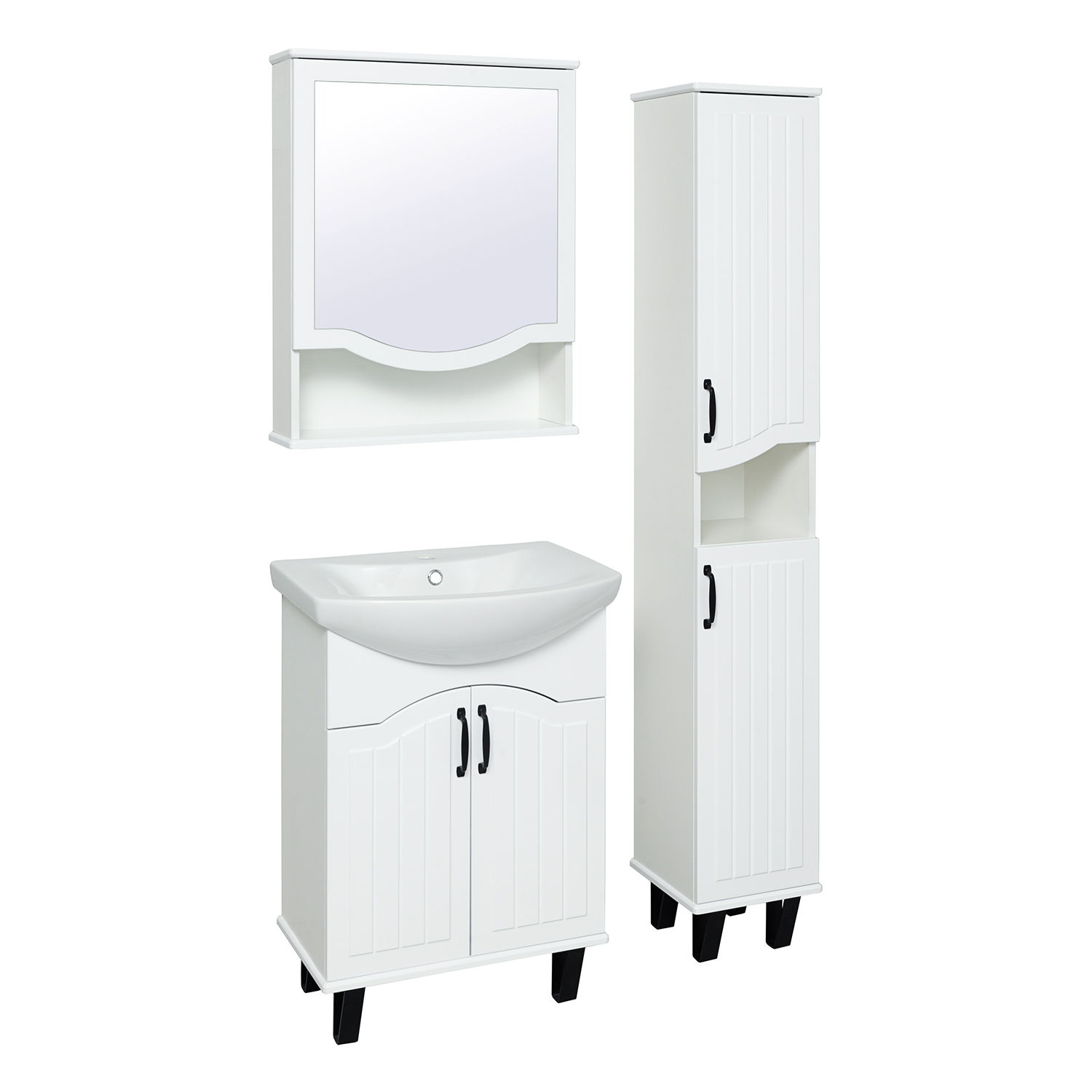 Шкаф-колонна напольный с двумя распашными дверками и открытой нишей посередине. В верхнем и нижнем отделениях по одной встроенной полке. Петли со встроенным доводчиком, ножки черные пластиковые -4шт, ручки черные -2шт. Выпускается только в правом исполнении.