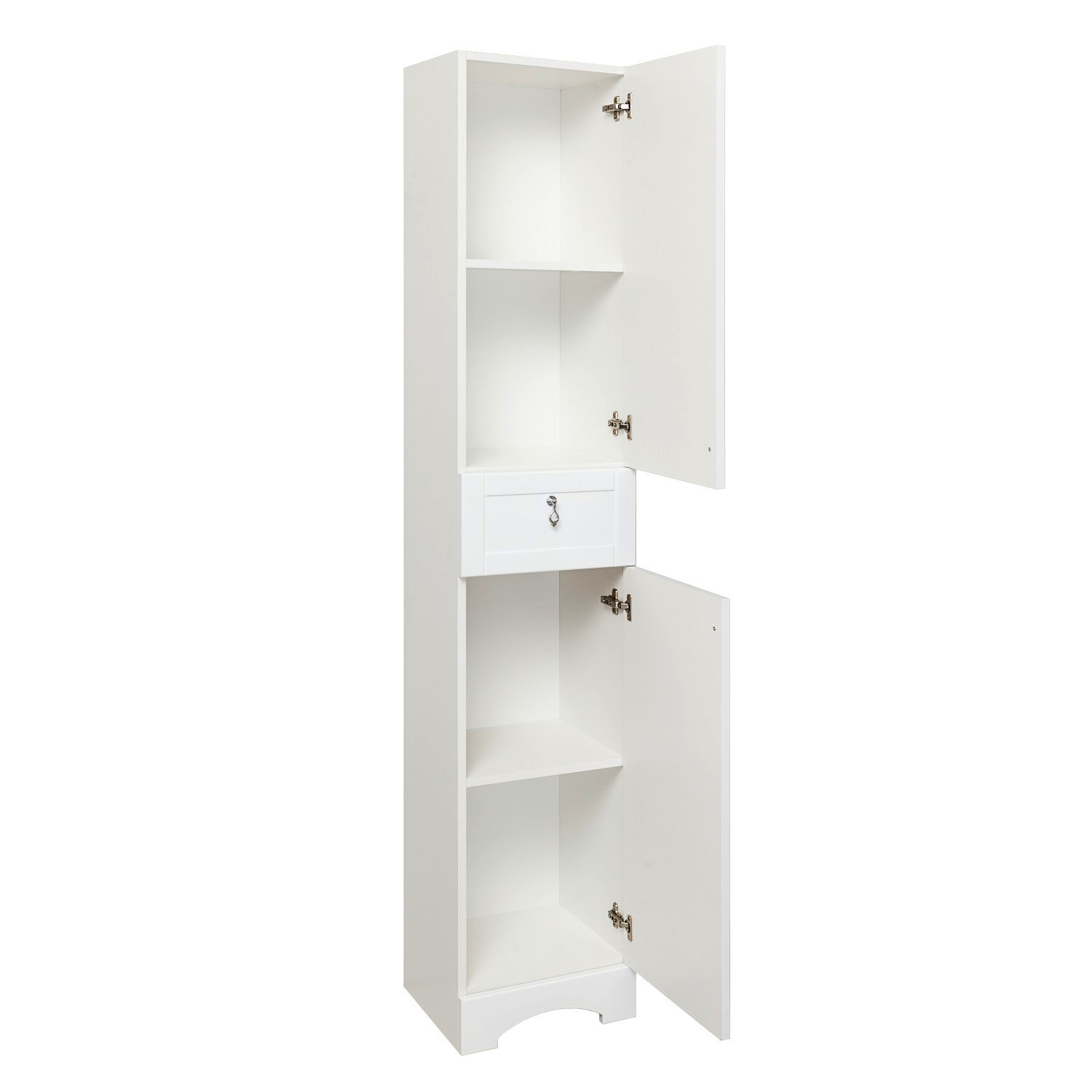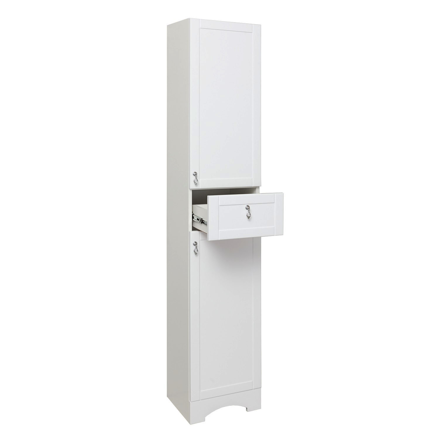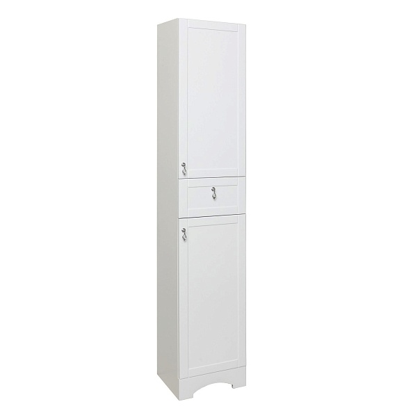 Шкаф-колонна напольный с двумя распашными дверками и выдвижным ящиком посередине. В каждом отделении - по одной внутренней полке. Петли со встроенным доводчиком, ящик - на шариковых направляющих полного выдвижения, ручки - 3шт. Устанавливается на 4 пластиковые опоры, скрытые за нижней фальшь-панелью. Выпускается только в правом исполнении.