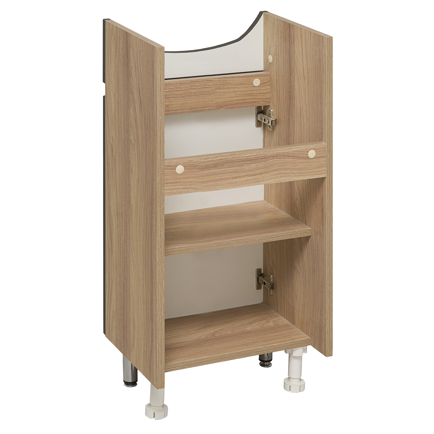 Тумба с раковиной RUNO ЛАДА - модное и оригинальное решение для бюджетного оснащения ванной комнаты. Тумба под раковину ЛАДА (напольная) выполнена в двух цветах - классическом белом и в стильном цвете - графит/серый дуб . Тумба в ванную имеет две распашные дверцы и одну внутреннюю полку. В комплекте идут петли со встроенным доводчиком, 2 хромированные и 2 пластиковые ножки. Тумба для ванной комплектуется раковиной из сантехнического фарфора "Манго" (407х330 мм). Раковина имеет глубину 17 см. Мебель для ванной RUNO - красота и практичность в мелочах!
