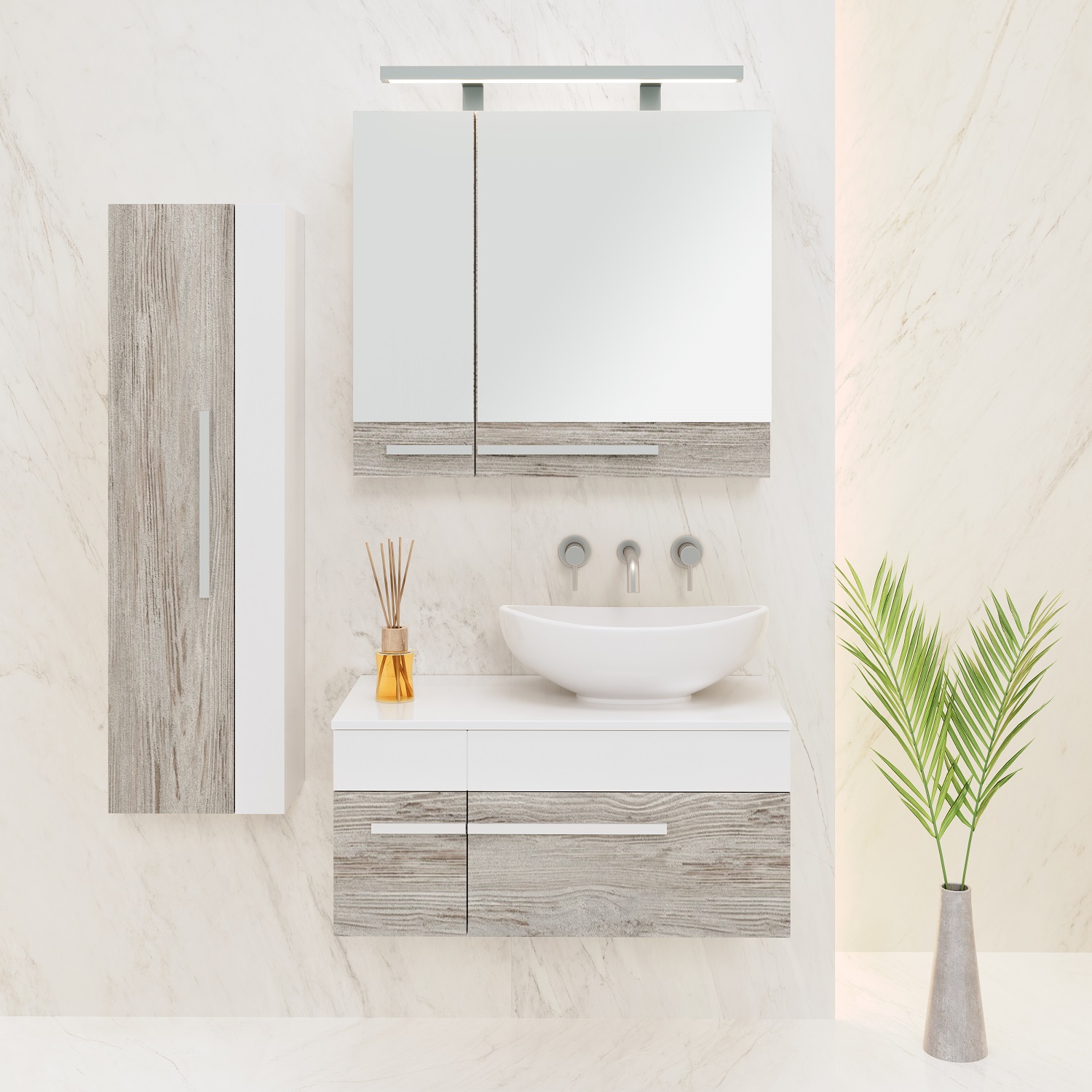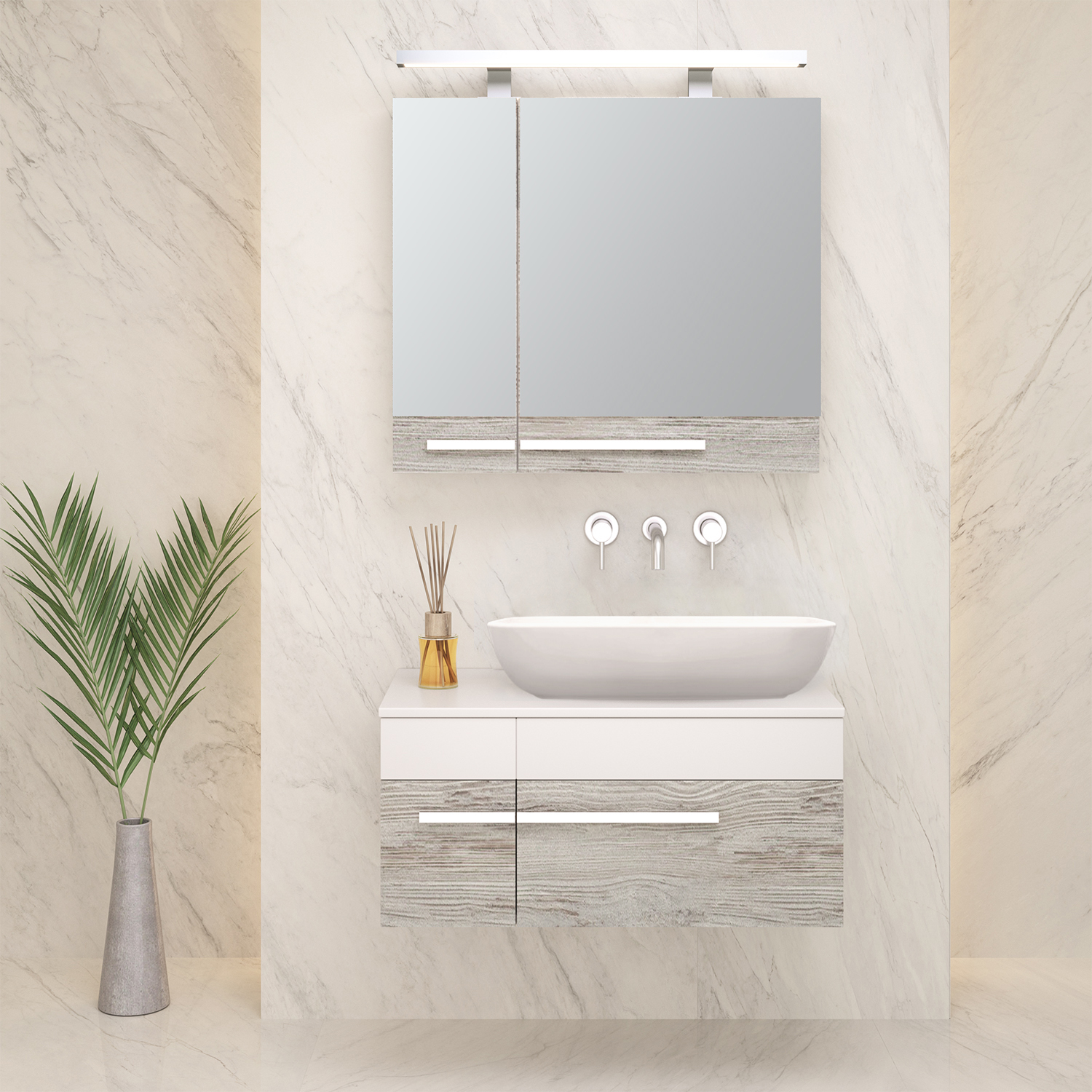Тумба подвесная под умывальник с одной распашной дверкой и выдвижным ящиком справа. Благодаря универсальному отверстию на столешнице тумба может комплектоваться различными вариантами накладных раковин: модель «Caspia» 60 TM Cersanit с вместительной чашей овальной или квадратной формы или раковина «Гамма» 56 ТМ Kirovit c глубокой чашей и высокими бортиками, которые отражают современные тренды в дизайне. Ящик на шариковых направляющих, оснащенных системой плавного закрывания. Петли со встроенным доводчиком.