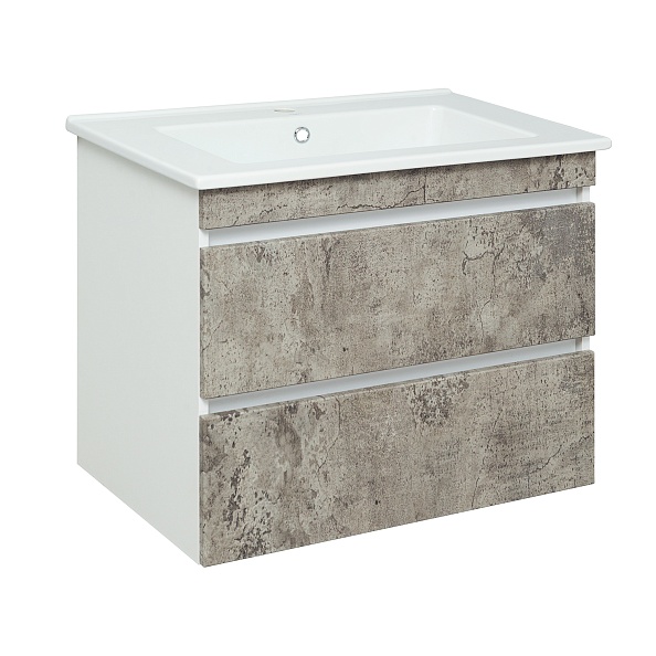 Коллекция мебели "Манхэттен" выполнена в современном стиле. Корпус изделий изготовлен из белого ЛДСП, а фасады облицованы матовой пленкой ПВХ цвета "серый бетон". Тумба под умывальник подвесная с двумя выдвижными ящиками на шариковых направляющих с доводчиком. Навесы - 2шт.