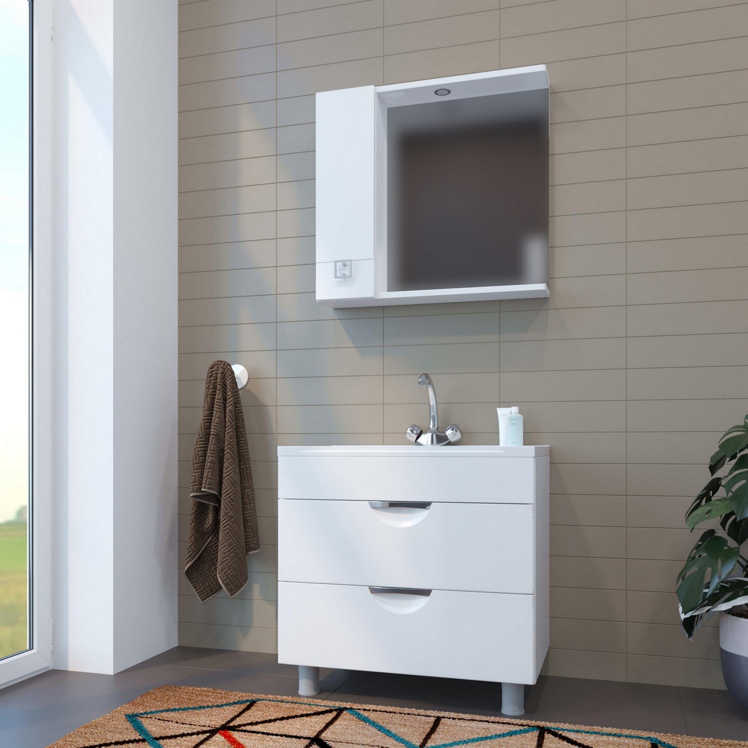 Коллекция КВАДРО создана специально для любителей классического дизайна. Правильные геометрические формы тумбы и шкафчика зрительно вытянут пространство ванной комнаты, а оригинальная современная фурнитура на мебели освежит весь интерьер помещения. Покрытие фасада пленкой ПВХ делает мебель практичной, более устойчивой к механическим повреждениям и неприхотливой в уборке.