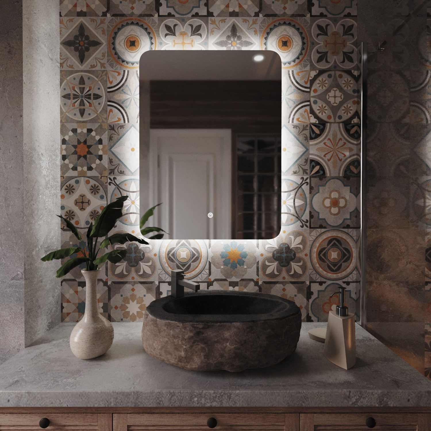 Настенное зеркало для ванной Mixline с подсветкой 60 х 80 см изготовлено из зеркального полотна толщиной 4 мм. Оснащено сенсорным выключателем и диммером, который при удержании пальца на сенсоре позволяет менять интенсивность освещения. Свет белый (холодный 5800К - 6300К). Все электрические компоненты размещены внутри корпуса из Abs-пластика, который защищает от влаги и механических повреждений. В качестве элемента подсветки используется светодиодная лента, которая обеспечивает яркое свечение по периметру зеркала. Срок службы диодов - 100 000 часов. Зеркало влагостойкое и защищено от попадания случайных брызг и капель воды. Комплектация: паспорт и крепеж.