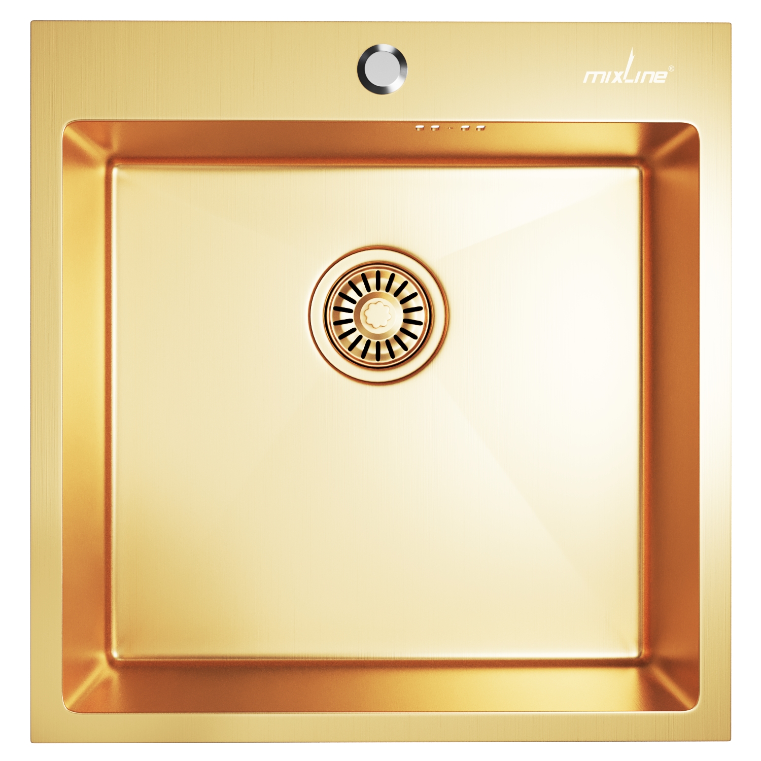 Мойка MIXLINE настольный монтаж 50х50 (3,0) вып 3 1/2, 20см с сифоном золото PRO (550548)