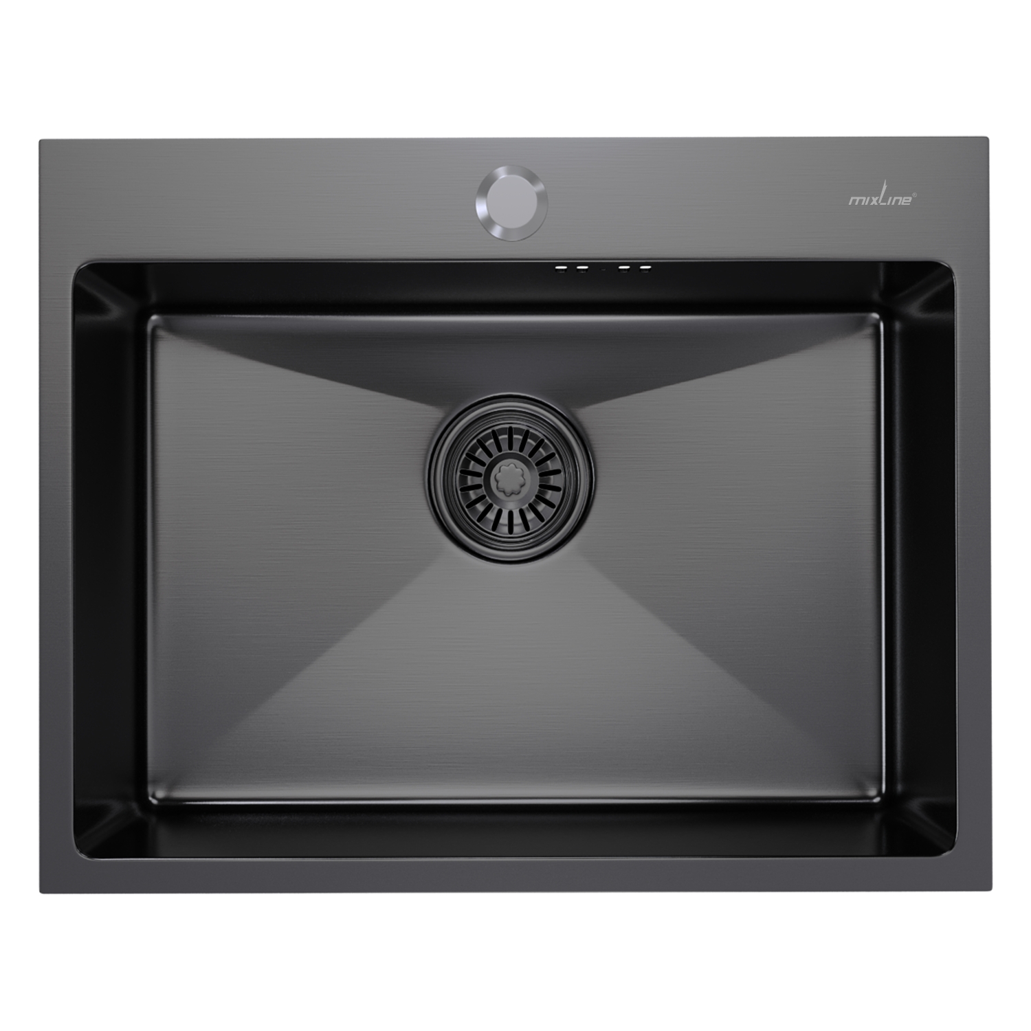 Мойка MIXLINE настольный монтаж 60х45 (3,0) вып 3 1/2, 22см с сифоном черный графит PRO (547236)