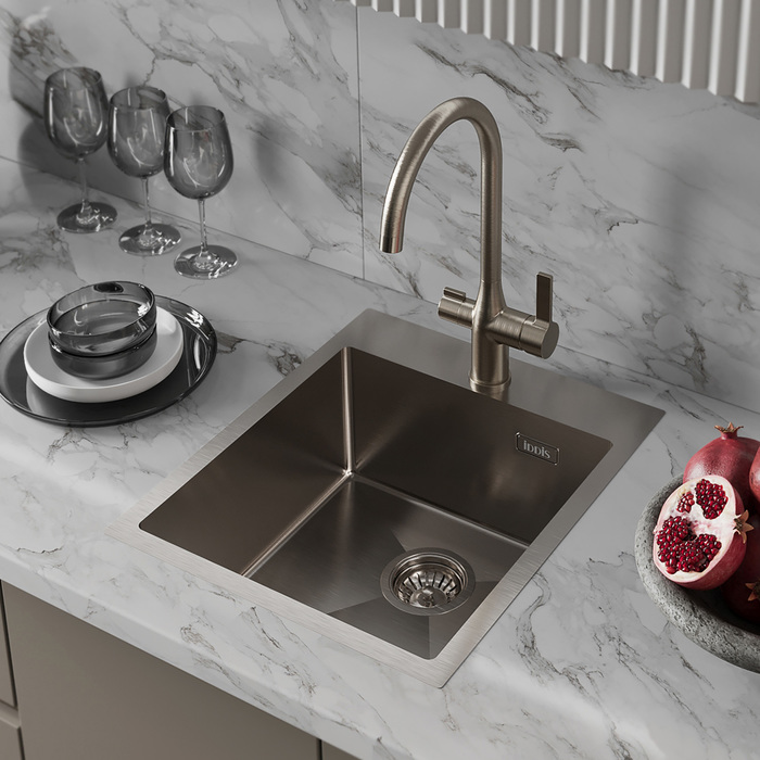 Мойки Haze отличаются современным дизайном и особой ручной технологией производства, что позволяет добиться идеальной геометрии – малый радиус закругления углов увеличивает рабочее пространство и помогает избежать «мертвых зон». Выполнение повседневных задач становится еще проще: в мойке удобно разместить большое количество посуды и мыть крупные предметы, такие как противень. Плоский сифон занимает меньше места, освобождая полезное пространство для хозяйственных мелочей. Подходит для кухонных тумб от 45 см.