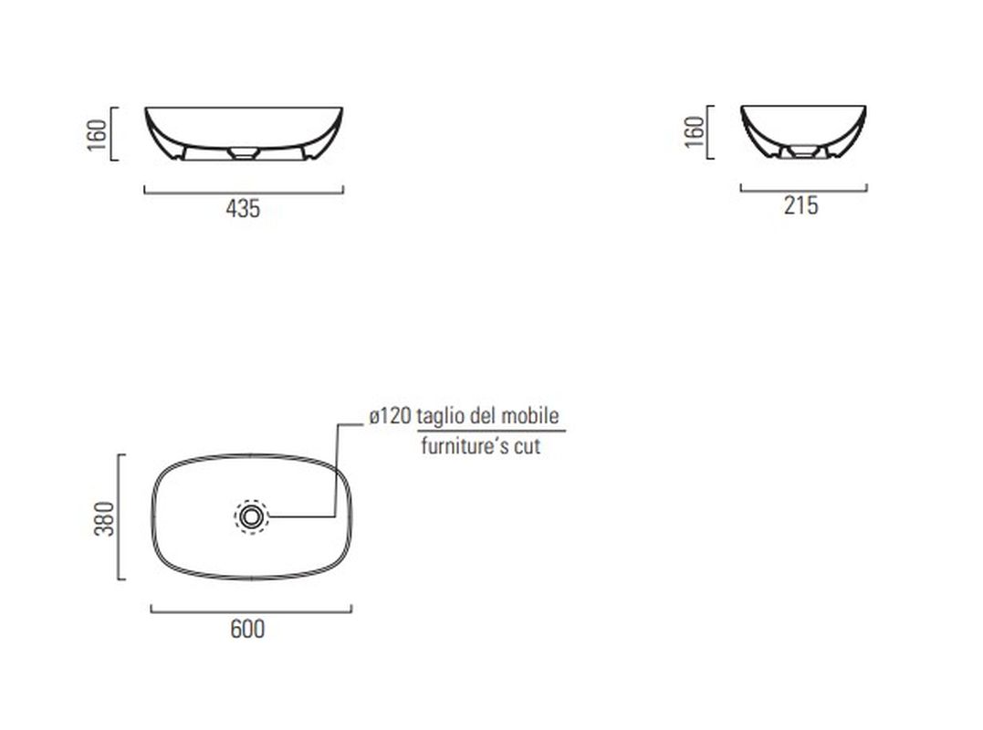 Раковина - чаша GSI NUBES 380 мм х 600 мм, без отверстия под смеситель, без перелива, белая глянцевая (978311)