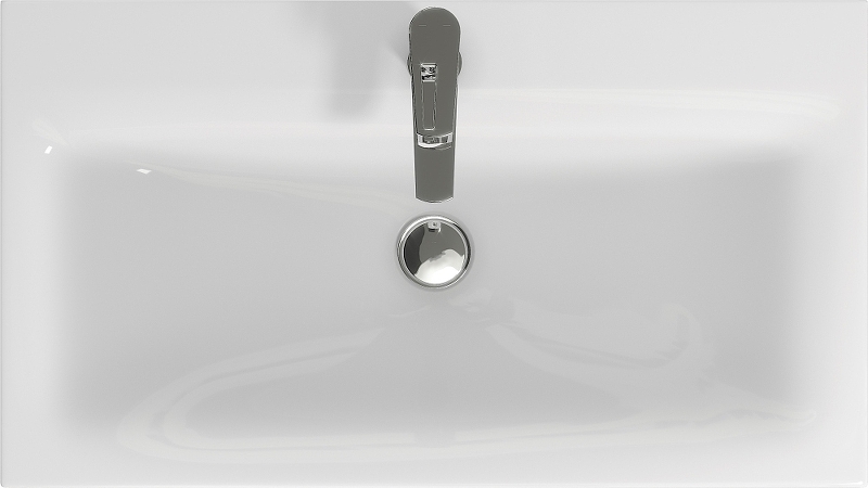 Стильная раковина лаконичной прямоугольной формы шириной 80 см подходит для установки на столешницу. Гармонично сочетается с тумбами для санузлов.