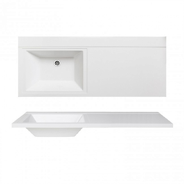 Умывальник из литьевого мрамора имеет ассиметричную форму. Полочка справа позволяет разместить на умывальнике все необходимые аксессуары, а глубокая чаша удобна в использовании. Для монтажа раковины на тумбу необходимо дополнительно под крыло установить кронштейн. Кронштейн в комплектацию не входит, приобретается отдельно.