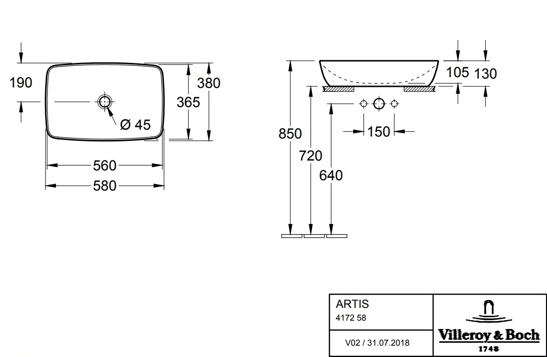 Раковина накладная Villeroy & Boch Artis (41725801) (58 см)
