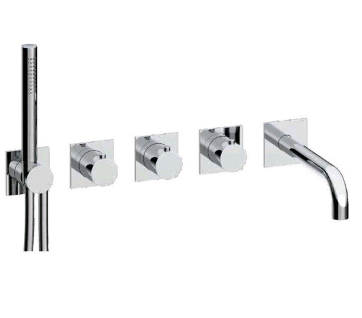 Смеситель для ванны и душа, Almar, на 3 потребителя, тип открывания воды-вентильный, тип регулирования воды-термостатический картридж, монтаж-настенный встраиваемый, отверстия для монтажа-5, вынос излива, мм-212-242, тип излива-неподвижный, ручной душ-в комплекте, розетки-квадрат, внутренняя часть-необходимо заказать, цвет-хром