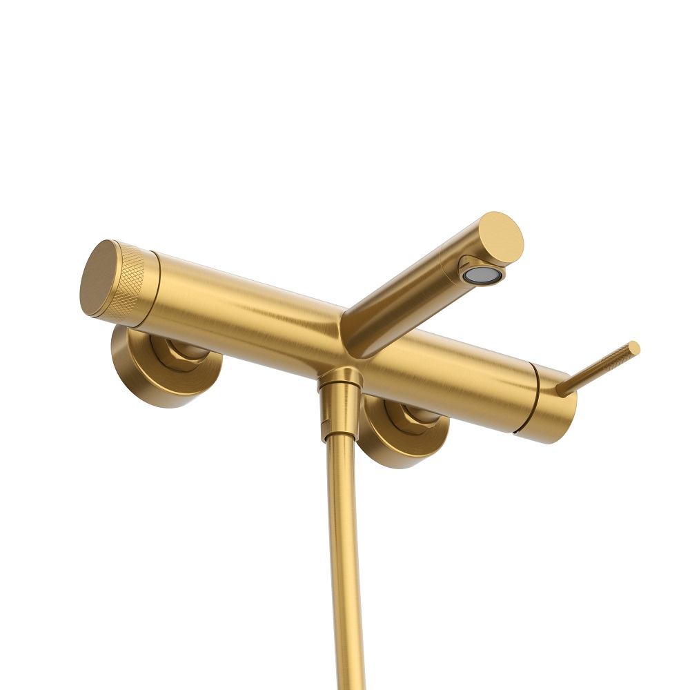 Смеситель для ванны и душа в комплекте с ручным душем, шлангом и держателем Cezares Relax, брашированное золото (RELAX-VD-BORO)