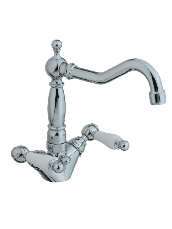 Смеситель для раковины, Cisal, Arcana Toscana, тип открывания воды-двухрычажный, тип установки-на раковину, отверстия для монтажа-1, высота, мм-215, цвет-хром/керамика