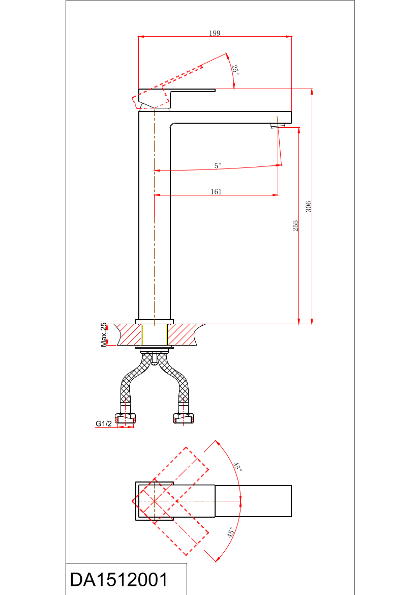- Гибкая подводка 40 см идёт в комплекте для быстрой установки.