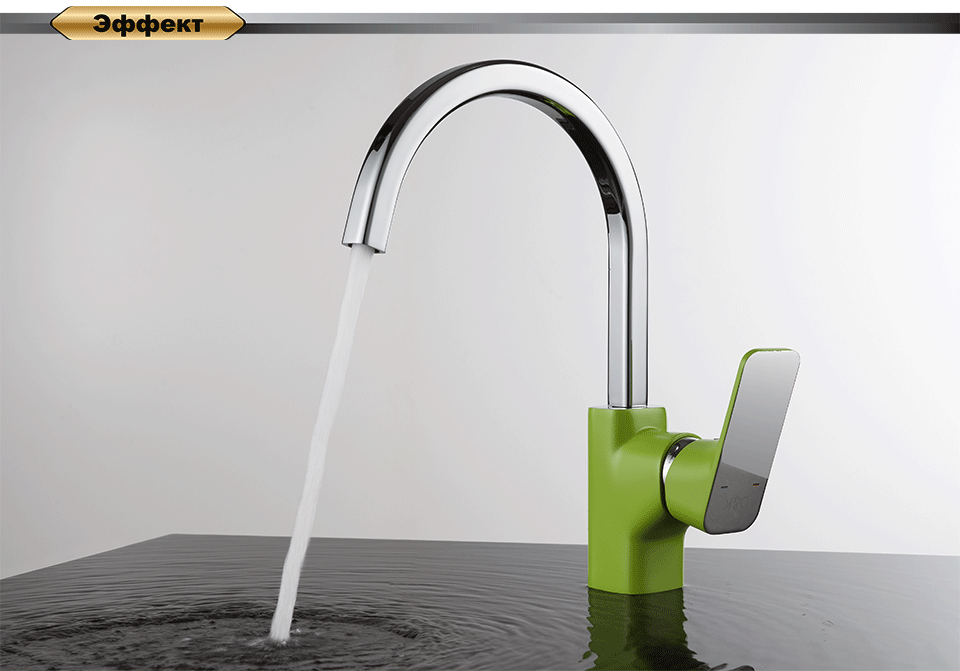 Строгие черты в свежем зеленом цвете подчеркивают индивидуальность каждой кухни. Ручка и излив правильно подобраны по размеру, для удобной повседневной эксплуатации на долгие годы.