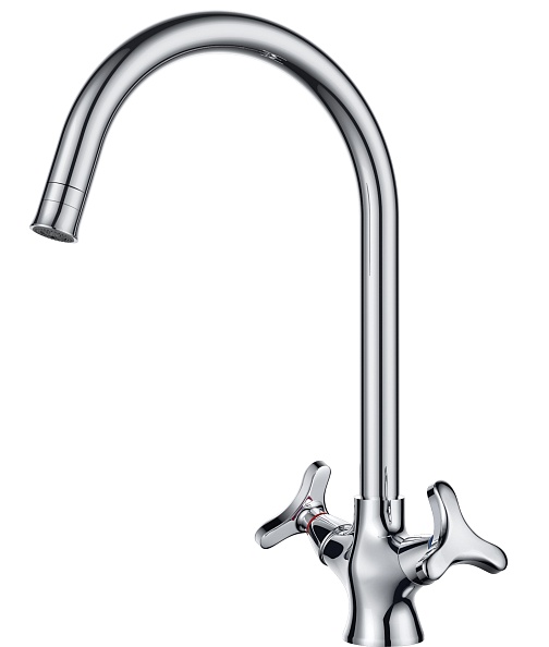 Смеситель высокий для кухни D&K Hessen.Goethe DA1382441 Hessen - консерватизм, доработанный до совершенства. Притягивающий классический внешний вид, для предпочитающих стабильность. Блестящий внешний вид двухручкового смесителя с обновленными ручками привлекает своим внешним видом, послужит прекрасным дополнением классической кухни. - Бесплатное гарантийное обслуживание - 10 лет; - Смесители из латуни высокого качества, безопасны для людей и домашних животных из-за пониженного содержания свинца; - Блестящее хромированное покрытие обладает высокими защитными и декоративными свойствами; - Протестирован на 500 000 циклов включения, что составляет более 30 лет повседневного использования, семьи из четырёх человек; - Аэратор Neoperl экономит воду за счет смешивания с воздухом, струя становится ровнее и мягче, снижая уровень шума; - Гибкая подводка 40 см идёт в комплекте для быстрой установки.