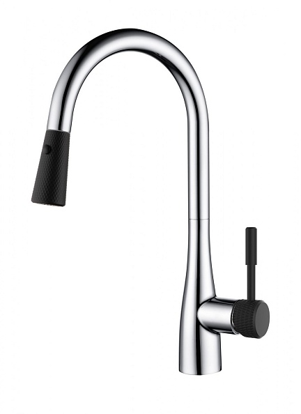 Смеситель для кухни D&K Rhein.Schiller с выдвижной лейкой хром черный (DA1462505B)