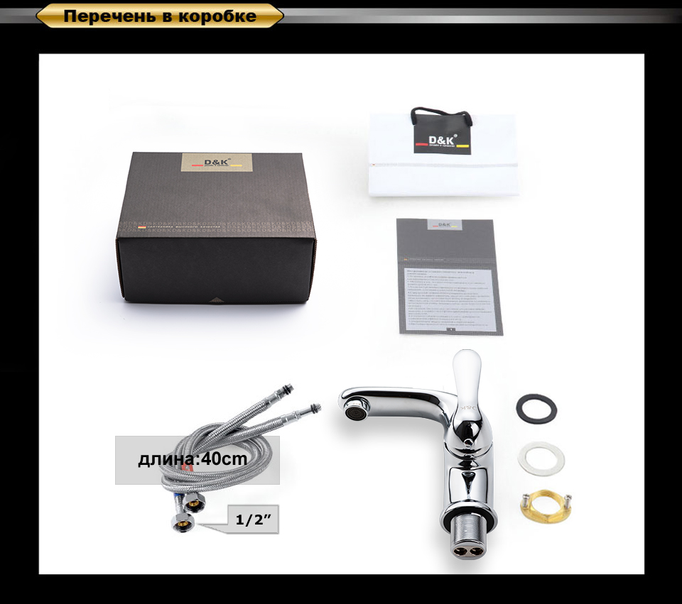 - Гибкая подводка 40 см идёт в комплекте для быстрой установки.