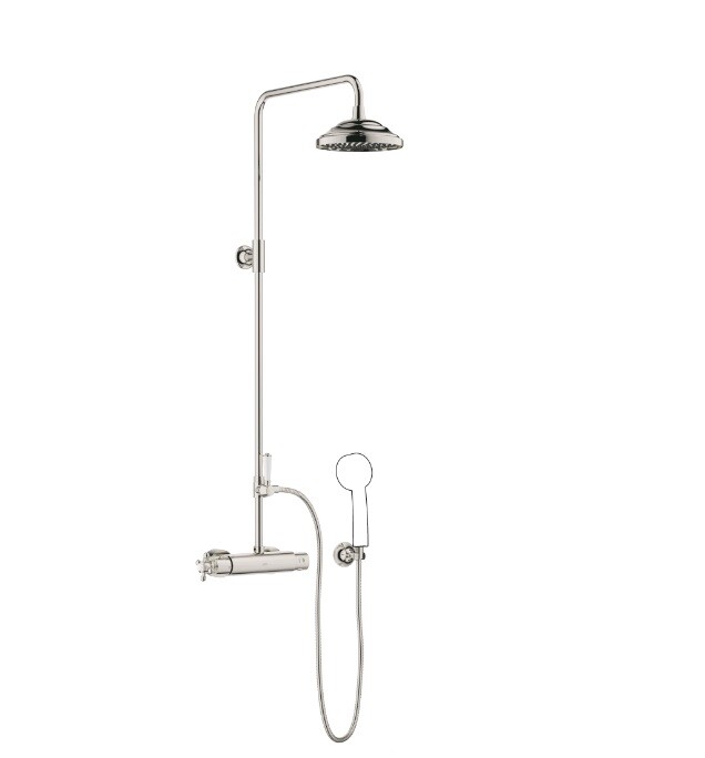 Душевая стойка, Dornbracht, Madison, смеситель-в комплекте, поворотный переключатель душевая стойка/ручной душ, верхний душ-есть, форма верхнего душа-круглая, размер верхнего душа-200, держатель верхнего душа-есть, вынос, мм-420, размер штанги, мм-1160, диаметр трубы,мм-20, ручной душ-в комплект не входит (необходимо заказать), шланг-есть, размер шланга, мм-1250, присоединение 1/2", цвет изделия-платина (Platinum)