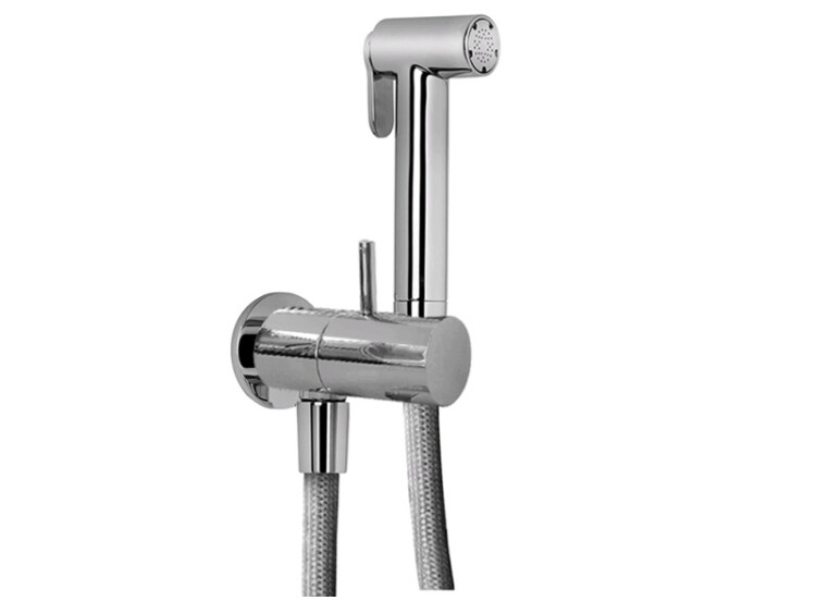 Гигиенический душ, Fantini, шланг-есть, длина шланга, мм-1200, держатель-есть, шланговое подсоединение-есть, материал-латунь, цвет-хром, с запорным вентилем, с двойной функцией (для очистки унитаза/для личной гигиены, при использовании вместе со смесителем для душа), круглая розетка, впуск 1/2''