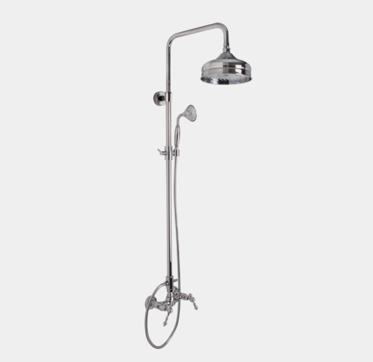 Душевая стойка, Fima Carlo Frattini, Epoque, смеситель-в комплекте, тип открывания воды-вентильный, тип регулирования воды-керамическая кран-букса, 2 подвода воды 1/2 с эксцентриком, верхний душ из латуни-есть, форма верхнего душа-круглая, размер верхнего душа,мм-200, держатель верхнего душа-есть, вынос, мм-300, размер штанги, мм-1388, ручной душ с защитой от извести анти-кальк-в комплекте, гибкий шланг из латуни-есть, размер шланга, мм-1500, переключатель, цвет-золото