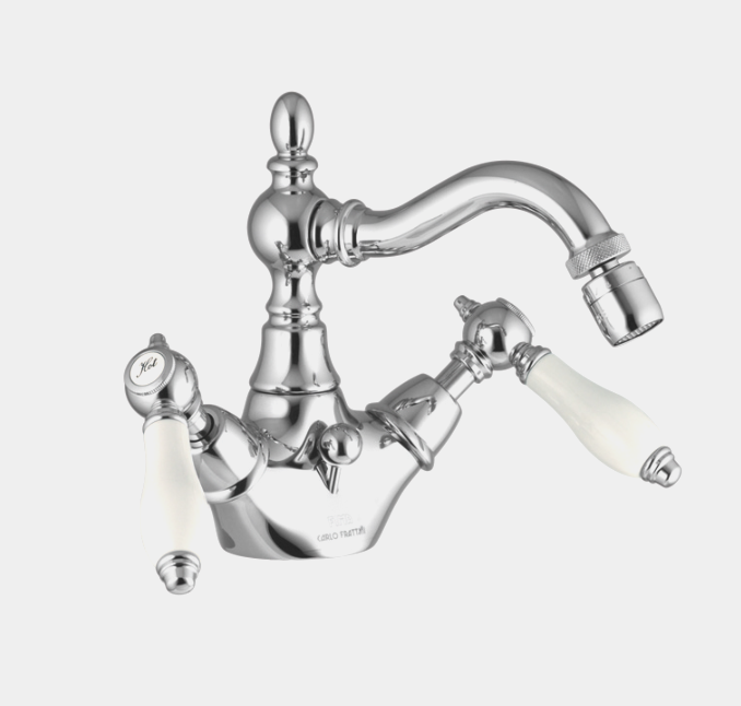 Смеситель для биде, Fima Carlo Frattini, Herend, тип открывания воды-вентильный, тип регулирования воды-керамическая кран-букса, отверстия для монтажа-1, высота, мм-171, вынос излива, мм-141, материал ручки-мрамор, цвет ручки-белый, донный клапан-есть 1"1/4, с двумя гибкими шлангами, тип подводки-гибкая, цвет-золото