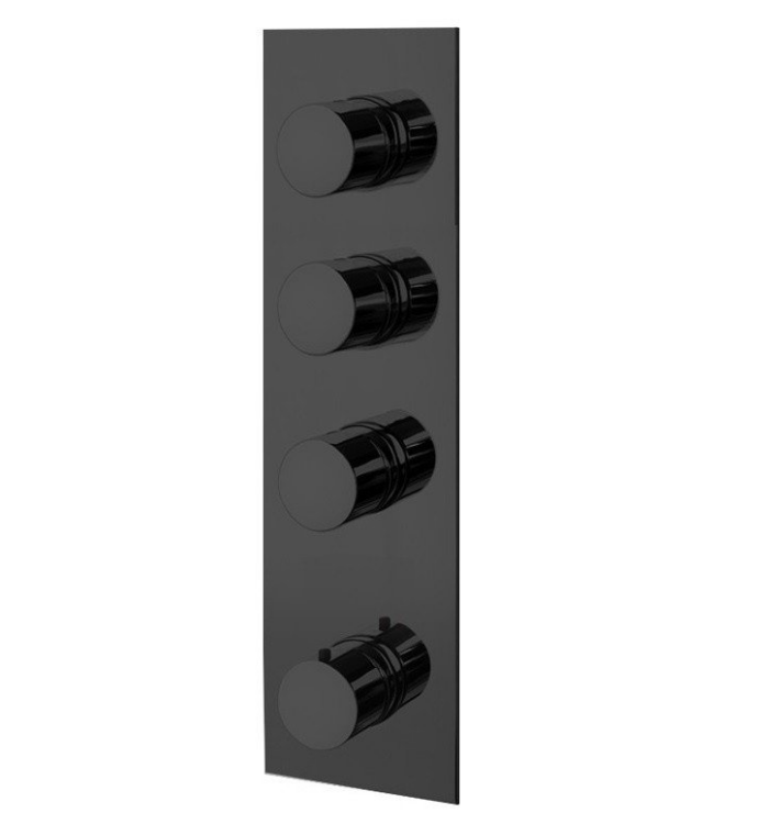 Смеситель для душа, Fima Carlo Frattini, Fimatherm, на 3 потребителя, тип открывания воды-вентильный, тип регулирования воды-термостатический картридж, монтаж-настенный встраиваемый, установка вертикально и горизонтально, 3 клапана контроля, ручки с защитой от обжигания, внутренняя часть-необходимо заказать, цвет-чёрный матовый