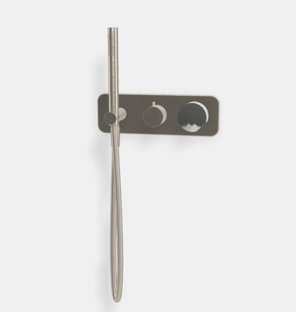 Смеситель для душа, Fima Carlo Frattini, So, на 2 потребителя, тип открывания воды-однорычажный, тип регулирования воды-керамический картридж, монтаж-настенный встраиваемый, отверстия для монтажа-3, внутренняя часть-необходимо заказать, в комплекте-ручной душ с защитой от извести анти-кальк, держатель для душа с подводом воды, гибкий шланг хромалюкс, длина шланга, мм-1500 мм, ручки-необходимо заказать, цвет-брашированный никель