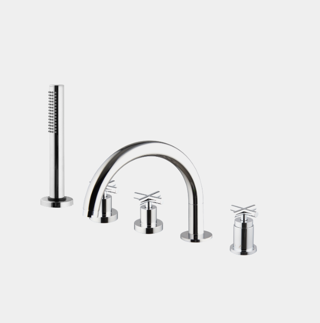 Смеситель для ванны и душа, Fima Carlo Frattini, Maxima, тип открывания воды-двухвентильный, тип регулирования воды-керамическая кран-букса, монтаж-на борт ванны, отверстия для монтажа-5, вынос излива, мм-232, ручной душ с защитой от извести анти-кальк-в комплекте, переключатель, внутренняя часть-необходимо заказать, цвет-брашированный никель