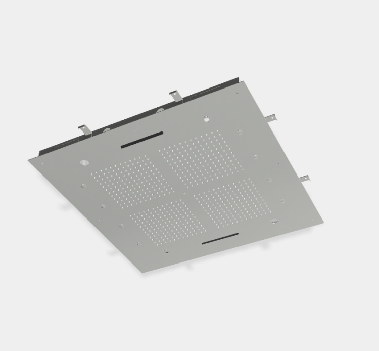 Верхний душ, Fima Carlo Frattini, Showerhead, тип установки-потолочный встраиваемый, размер душевого диска, мм-950*950, форма-квадратная,контроль хромотерапии с помощью пульта, встроено аудио устройство, анти-кальк диффузоры, 2 каскада, совмещение аудио/bluetooth (выбор музыки), 8 форсунок для мелкого распыления воды, ливневая струя, LED подсветка для хромотерапии, доступны 8 цветов, блок контроля F2801, внутренняя часть-необходимо заказать, материал-нержавеющая сталь, цвет-хром