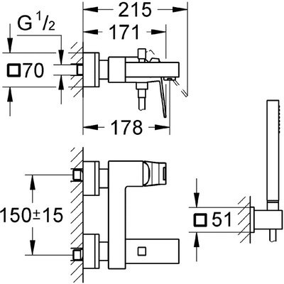 Смеситель для ванны GROHE Eurocube с душевым гарнитуром, хром (арт. 23141000)