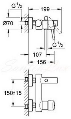 Переключатель воды ванна/душ:рычаг полуавтоматический