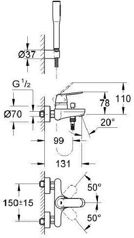 Межцентровое расстояние подключения:150+15 мм