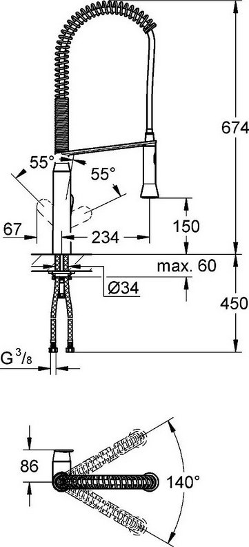 Подводка воды:гибкая 450 мм с накидной гайкой 3/8 дюйма