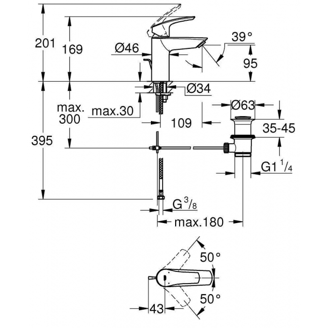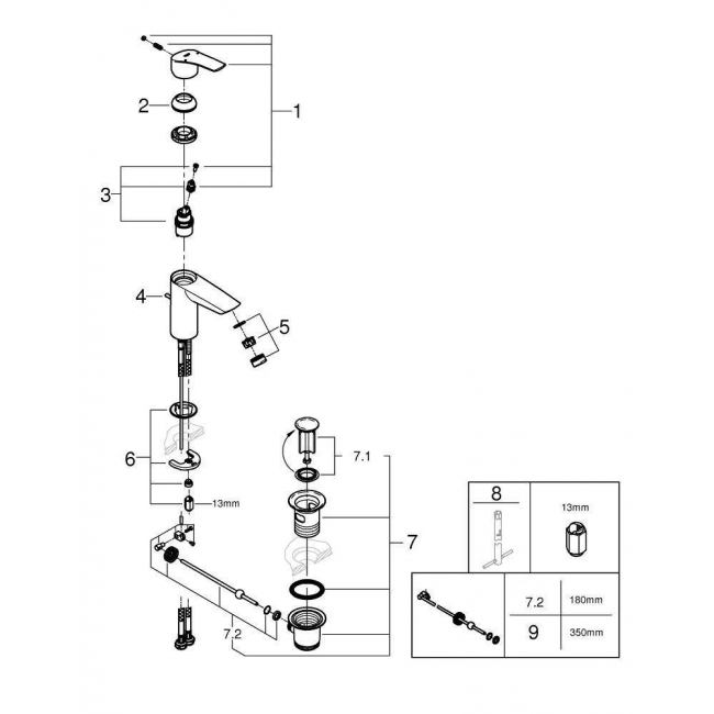 Смеситель для раковины GROHE Eurosmart корпус маленький, хром (арт. 33265003)