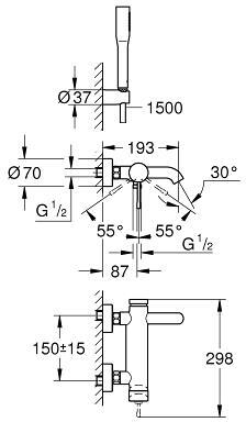 Смеситель для ванны GROHE Essence New с душевым гарнитуром, хром (33628001)