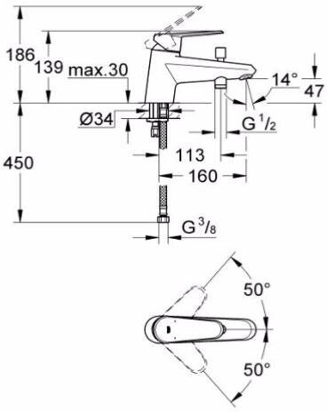 Смеситель для ванны Grohe Eurodisc Cosmopolitan 33192002