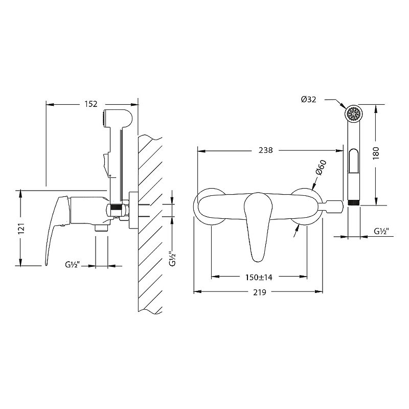 - Аксессуары в комплекте: лейка гигиенического душа с нажимным механизмом, шланг 1,5 м