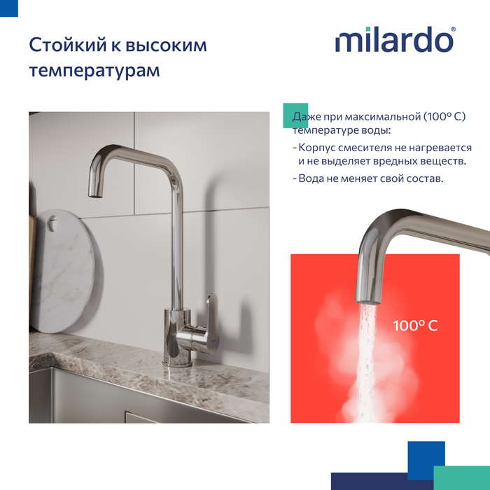 • Качественный механизм смешивания воды смесителя Milardo® рассчитан на более чем 70 000 циклов работы – это не менее 15 лет эксплуатации семьей из трех человек.