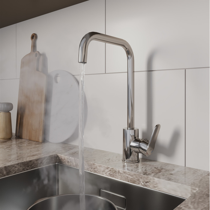Коллекция Poli создана под проекты современных интерьеров. Геометрическая форма излива этой модели лучше всего подойдет к мойкам прямоугольных и квадратных форм. Корпус смесителя Poli выполнен из современного полимерного сплава. Отличить такой смеситель легко по небольшому весу. А вот найти разницу в эксплуатационных характеристиках под силу только эксперту.