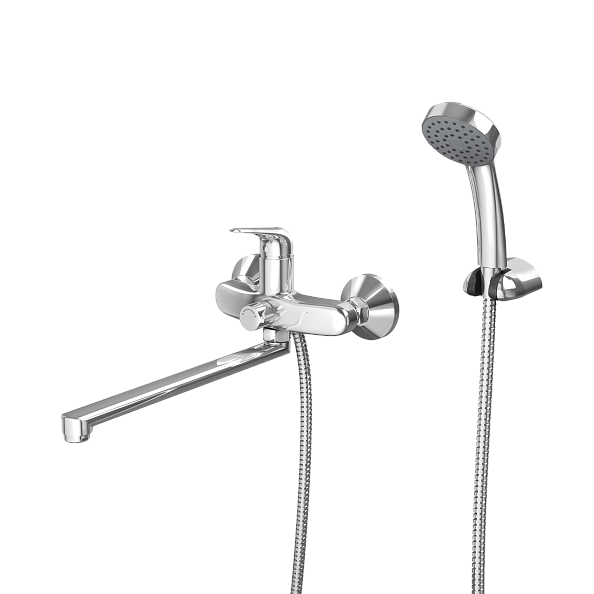 В комплекте однорежимная душевая лейка и душевой шланг длиной 1,5м, держатель душевой лейки, латунные эксцентрики, фум-лента, индивидуальный пакет, паспорт, гарантийный талон.