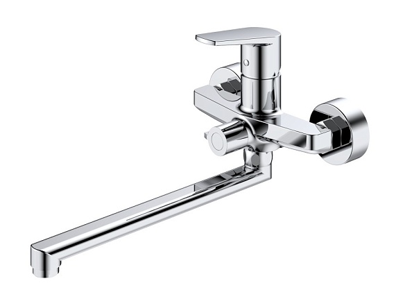 В смеситель установлен картридж D-35 с керамическими пластинами, а также дивертор с керамическими пластинами. Пластиковый аэратор с нержавеющим корпусом. Излив поворотный 325 мм (от стены).