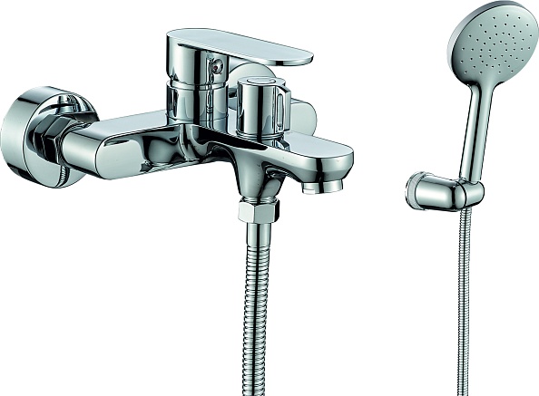 В комплекте однорежимная душевая лейка и душевой шланг длиной 1,5м., универсальная присоеденительная группа для установки на горизонтальную поверхность, фум-лента, индивидуальный пакет, паспорт, гарантийный талон.