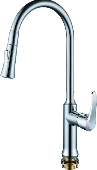 Смеситель для кухни RUSH арт. JA0735-24 с поворотным изливом и вытяжной лейкой из коллекции Jawa с металлической ручкой, изготовлен из высококачественной латуни и имеет рычажное управление.