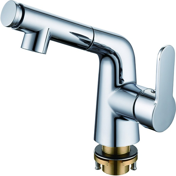 Смеситель для раковины RUSH арт. TE2835-12 с вытяжной лейкой из коллекции Tenerife с металлической ручкой, изготовлен из высококачественной латуни и имеет рычажное управление.